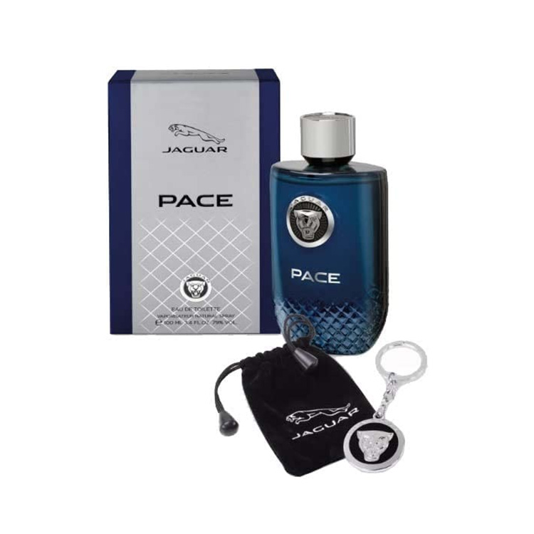 Jaguar Pace 2 Pcs Gift Set, gift set contains 100ml Perfume and Key Ring. Go on an olfactory journey with Jaguar Pace cologne. This fragrance was released in 2016 and it became a real hit with its invigorating blend of notes. At the top of the profile are scents of rosemary, green apple and black pepper. The core consists of iris flower, lavender and cashmere wood. It ends with a mix of moss, patchouli and amberwood.